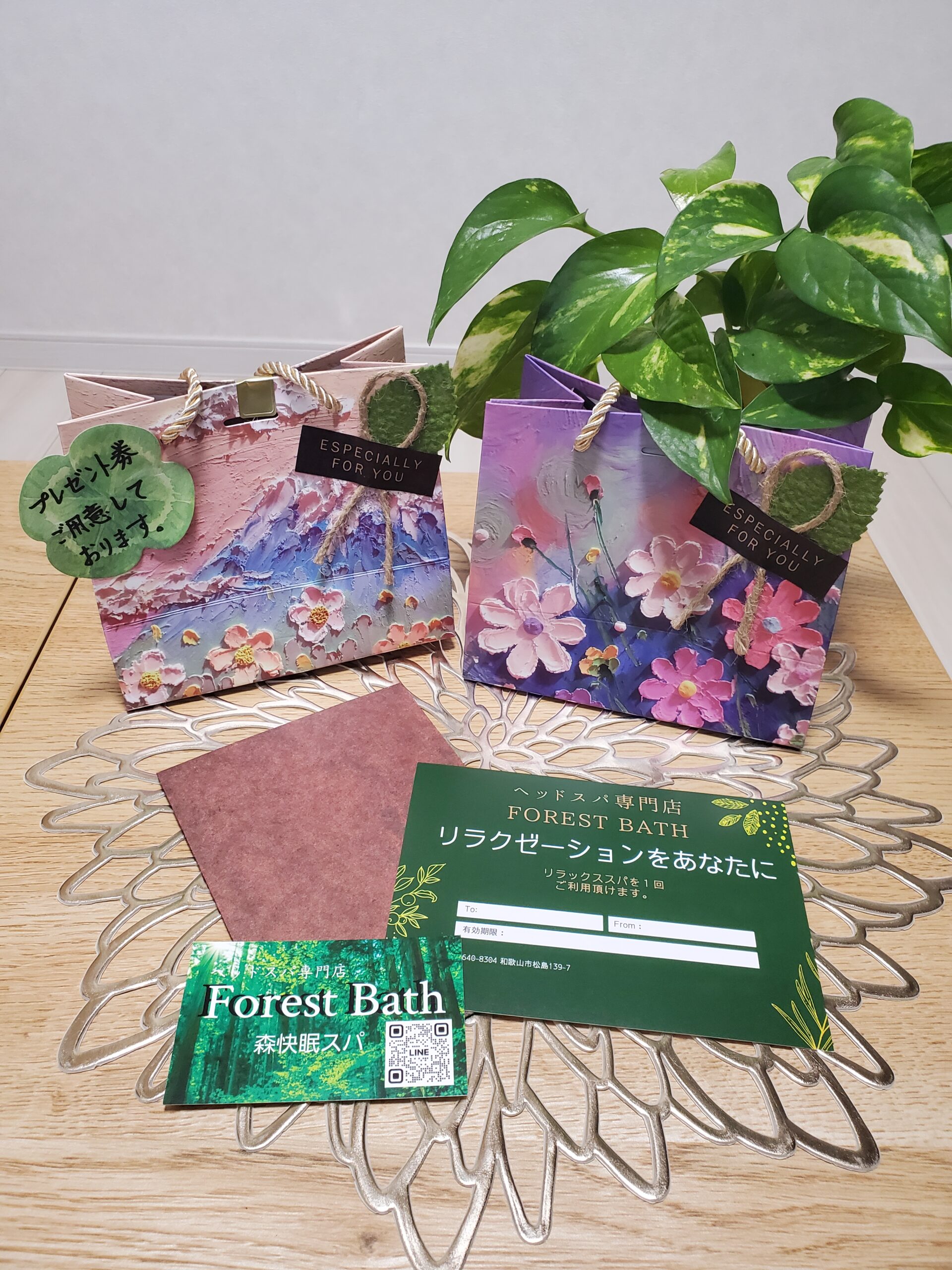 新しくNEWバックになってリラックススパのプレゼント券ご用意しました。見た目も可愛く華やかなプレゼントバックになってます。是非、お誕生日や日頃の感謝をプレゼントにこめてみてはいかがでしょうか'