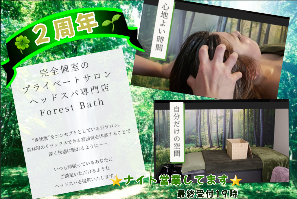 皆様、こんにちはForest Bathです(*^^*)ヘッドスパ専門店Forest Bathは、4/12で1周年を迎えることができました。これもひとえに皆様からのご愛顧があってのことだと身に染みており